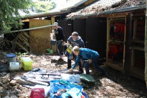 Jollenschrank im Natur Camp: Dach und Dachrinne reinigen, Vorplatz vor Jollenschrank reinigen (2 Personen),