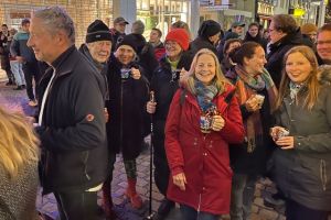 am Glühweinstand des Freiburger Weihnachtsmarktes in der Altstadt