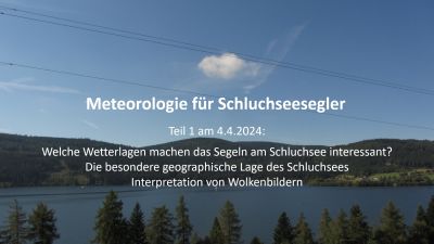 Am Donnerstag, den 4. April wird Martin Zeller mit dem Thema Meteorologie für Schluchseesegler (Teil 1) halten: