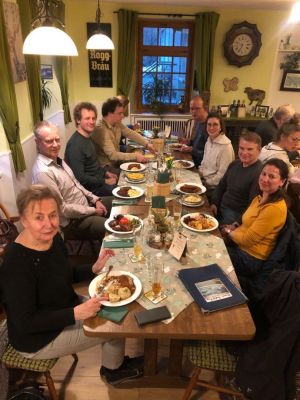 10 Jollensegler:innen konnten nach der Führung den Abend gemeinsam im Gasthaus ausklingen lassen und schon Ideen für die ersten Segeltage austauschen.
