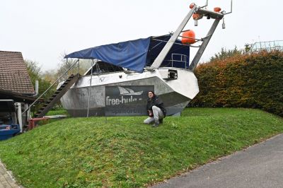 Seit mehr als 25 Jahren baut Holger Bührle in seinem Garten in Au bei Freiburg in seiner Schwarzwaldwerft die 22m lange HULG.