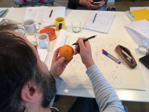 Dabei wurden die Himmelskoordinaten und Großkreisnavigation auch anhand sehr ungewöhnlicher Hilfsmittel erklärt. Hauptsache rund.