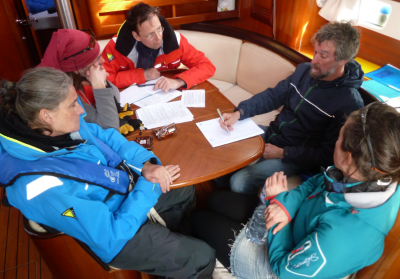 Wettermässig war vieles gegeben, Flaute bis Starkwind in Böjen bis 7 Bft, verschiedenste Wolkenformationen, die vielfach erörtert werden konnten im Rahmen der vorbereiteten wetterkundlichen Theorie. Auch das Thema Kommunikation an Bord war in Theorie und Praxis genauso gefragt wie das Funken (bei den Marinas war eine vorherige Anmeldung der Einfahrt über Funk Pflicht, das Unterlassen hat uns einmal einen heftigen Rüffel der Hafenmeisterin eingehandelt), die Motortechnik oder das Ankern.