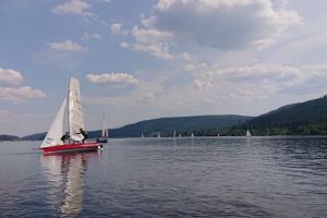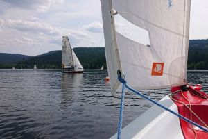 Beim Juni-Schluchseewochenende bekamen die HSCF-ler Besuch von einer Gruppe Segler aus Tübingen. Die gesamte HSCF-Jollenflotte sowie zwei int14 wurden fleißig von gemischten Crews bestehend aus Tübinger und Freiburger Segler*innen gesegelt. Am Samstag fanden zudem Grund- und Bootseinweisungen auf den HSCF-Jollen statt und am Sonntag haben sich spontan einige Teams für die Sonntagsregatta des SVS angemeldet. Es wurde viel gelacht, gequatscht, gegrillt, gechillt und vor allem gesegelt. Schaut es nach in unserer Bildergalerie.