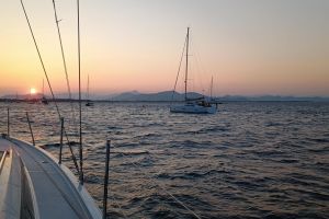 Nach und nach setzte sich ein verlässlicher Seewind durch, der ab dem späten Vormittag für 10–15 Knoten Wind und damit entspannte Segelbedingungen sorgte. Zwischenzeitlich wurde aus der Feinschmeckerflottille fast eine Regatta, als zwei Yachten auf dem Weg nach Porquerolles ihre Kräfte maßen. Die Kardinalstonnen als Regattatonnen umgedacht, sehr eng umrundet.
